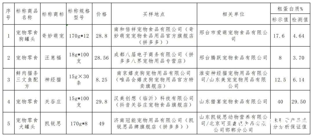 奇妙萌宠粗蛋白实测值不及明示值3成