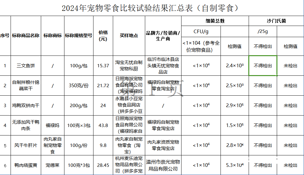 4款自制宠物零食菌落总数超标