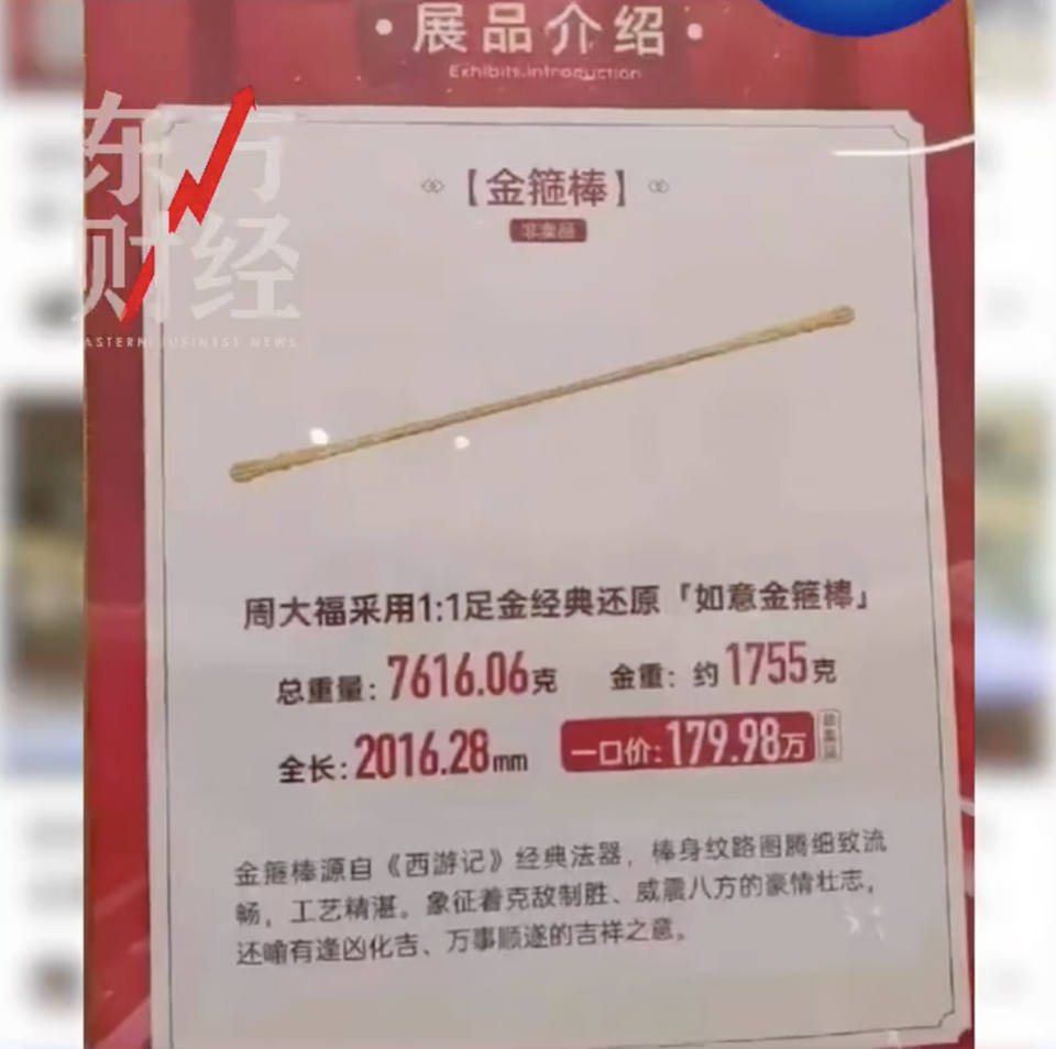 近日,周大福的纯金金箍棒展品引起网友热议。
