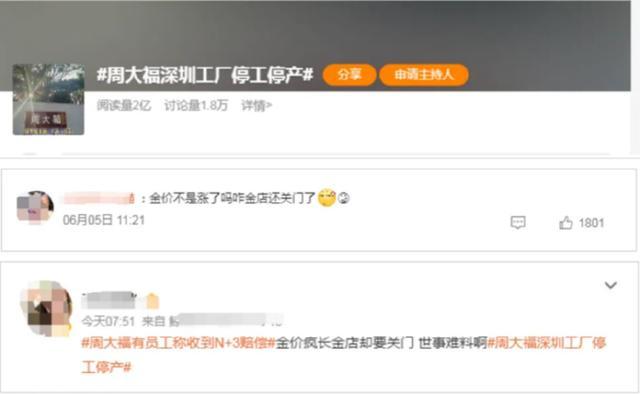 但是,等待周大福的却只有冷淡的市场、6月初“工厂停产停工”的热搜,以及消费者的一声叹息:金店关门,世事难料。