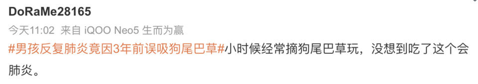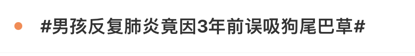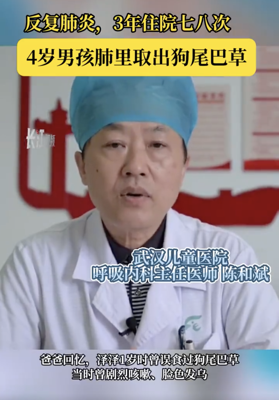 热闻|4岁男孩反复肺炎!专家竟从肺里揪出“安家”三年的狗尾巴草