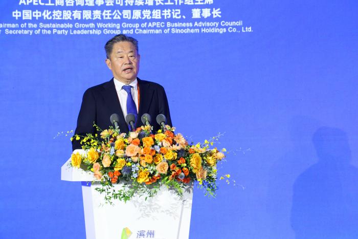 APEC工商咨询理事会可持续增长工作组主席,中国中化控股有限责任公司原党组书记、董事长宁高宁致辞。