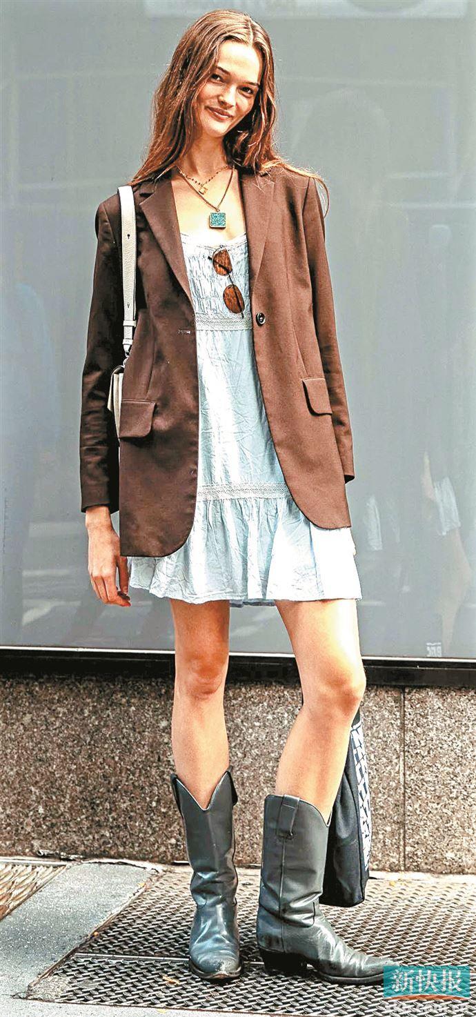 临近秋冬季,时髦精们通过将连衣裙塞进长筒皮靴中给风格注入更多现代感,搭配夸张且独特的饰品如叠加项链和大耳环或超大皮质肩包和随风摇曳的长吊坠等,增添整体造型的丰富性之余也尽情展现独特个人风格。