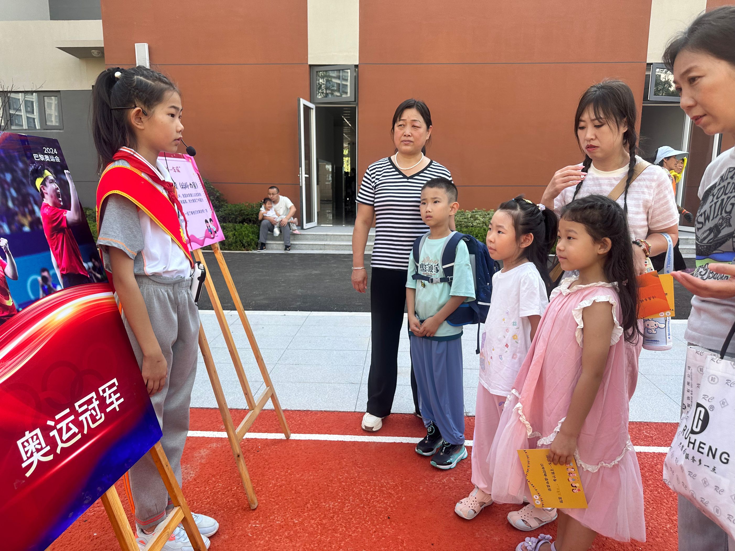 学哥学姐用生动的语言向萌娃们介绍奥运健儿在赛场上奋力拼搏的场景,感受夺冠时刻的荣耀。