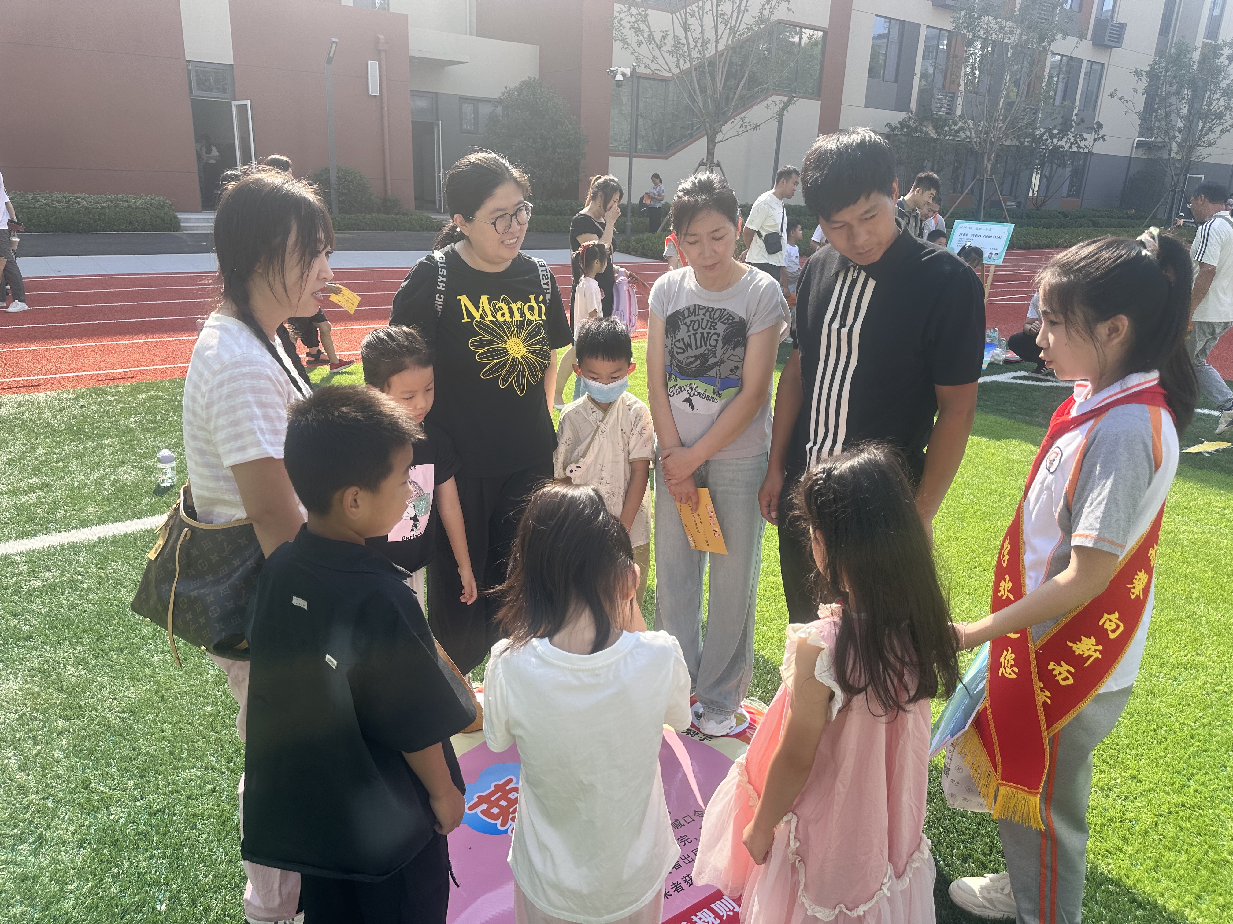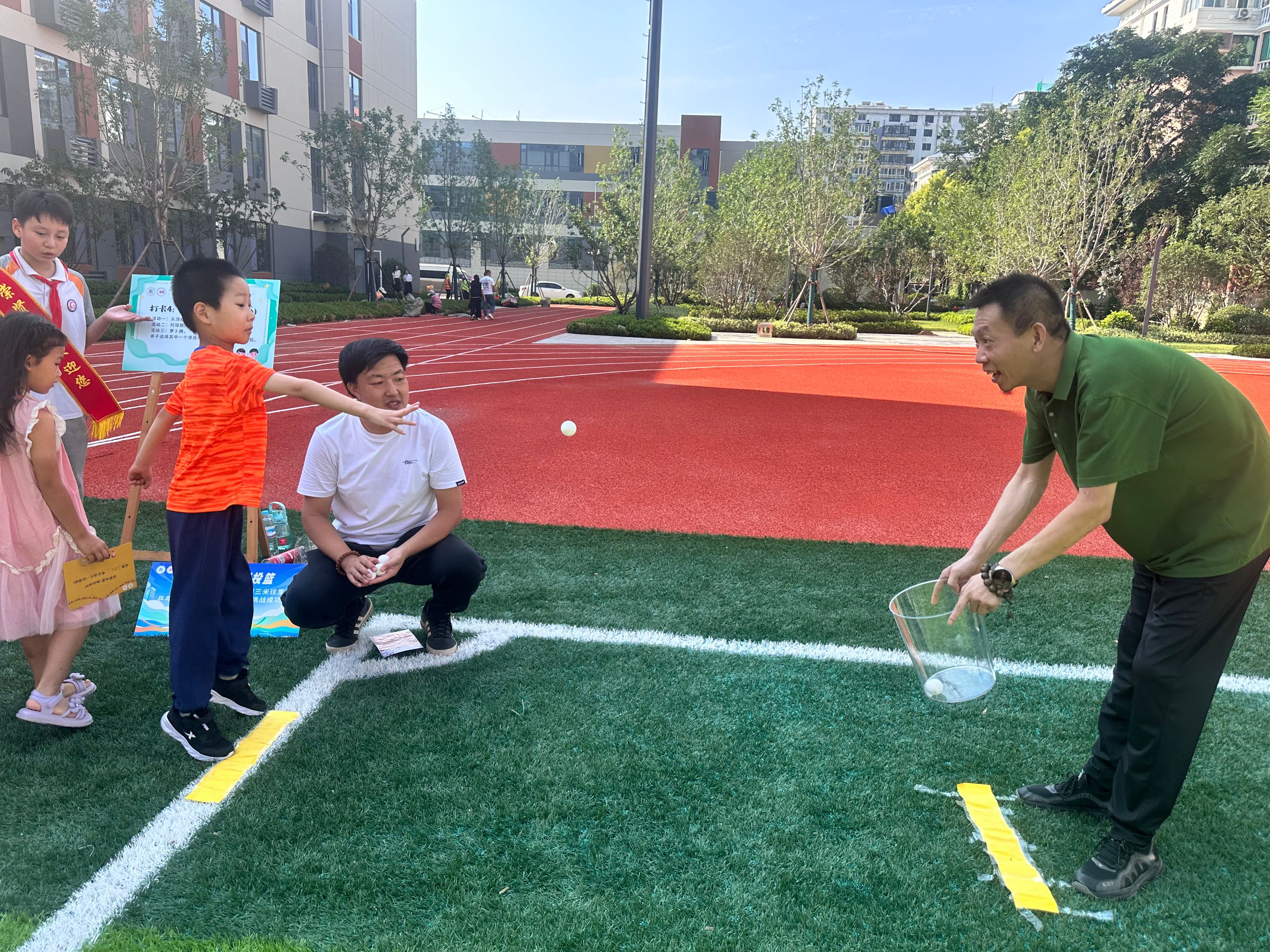 有趣的体育运动游戏在操场上如火如荼地进行,头顶投篮、托球跑、萝卜蹲,花样多多,体验多多。