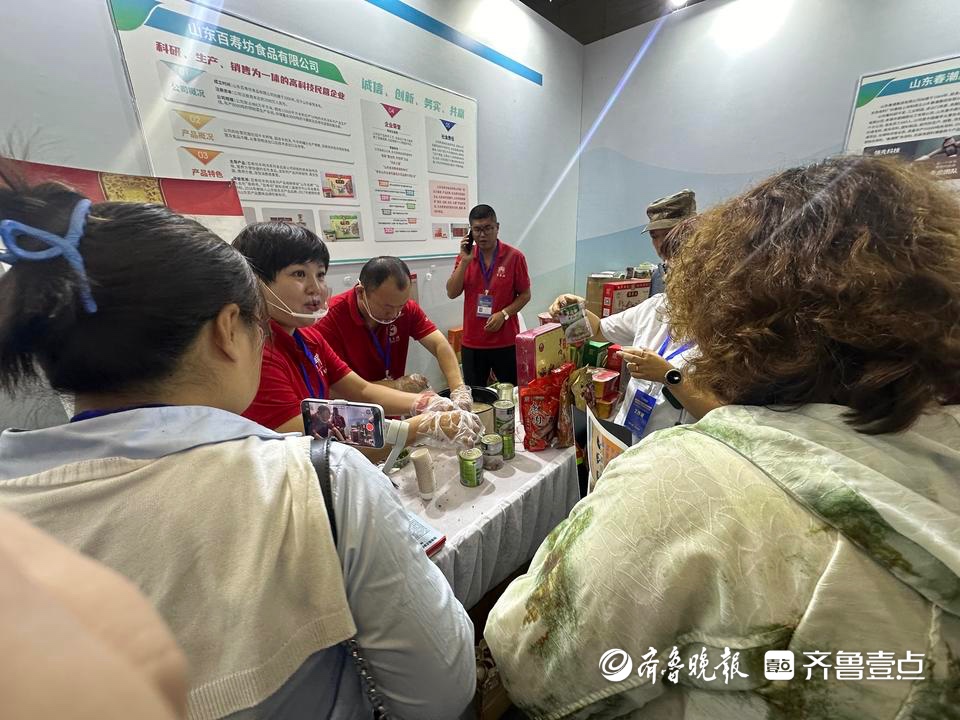 在山东展区,山东百寿坊食品有限公司带来的羊肉汤等食品吸引不少观众品尝。据了解,百寿坊羊肉汤系列产品相继荣获“山东名牌”“山东名吃”等称号。“百寿坊”商标连续三届被评为山东省著名商标,2016年被纳入山东知名农产品品牌,2017年被授权使用山东农产品整体品牌形象标识。