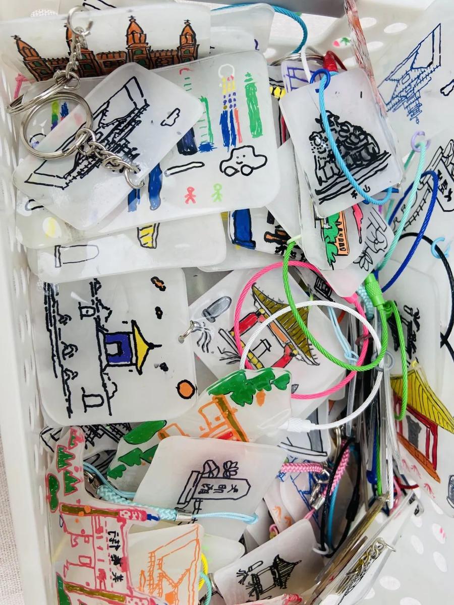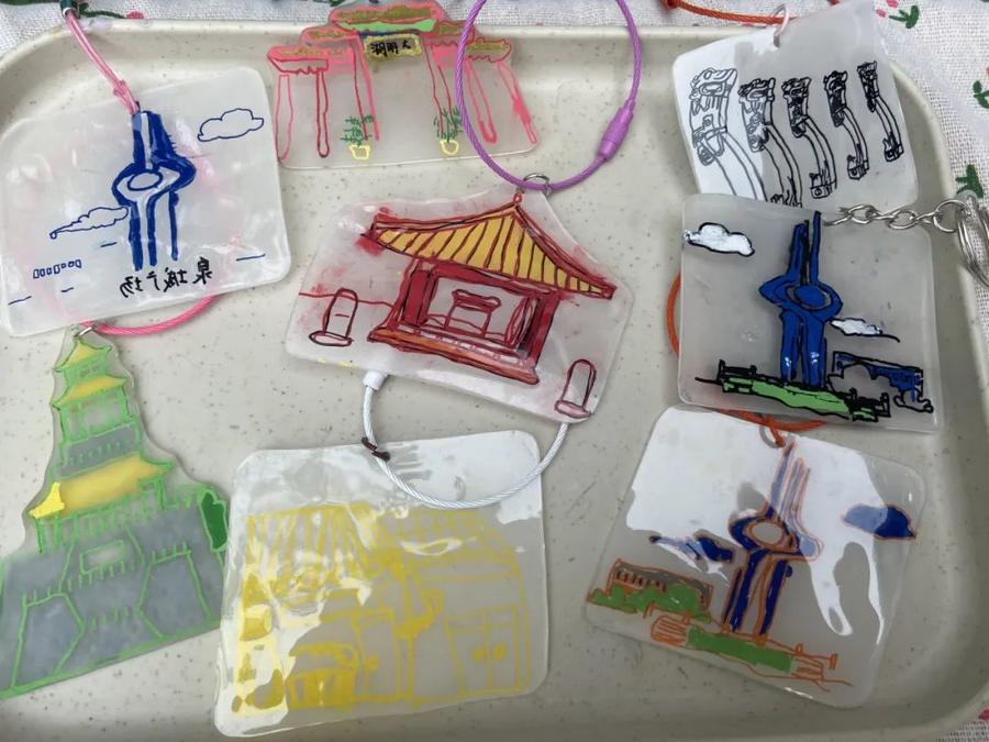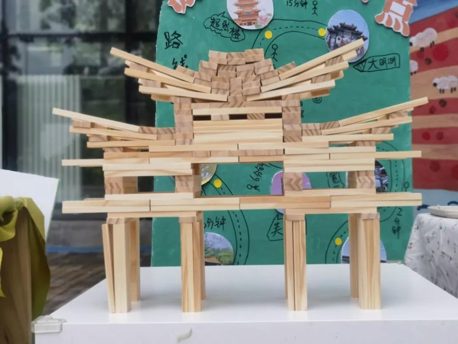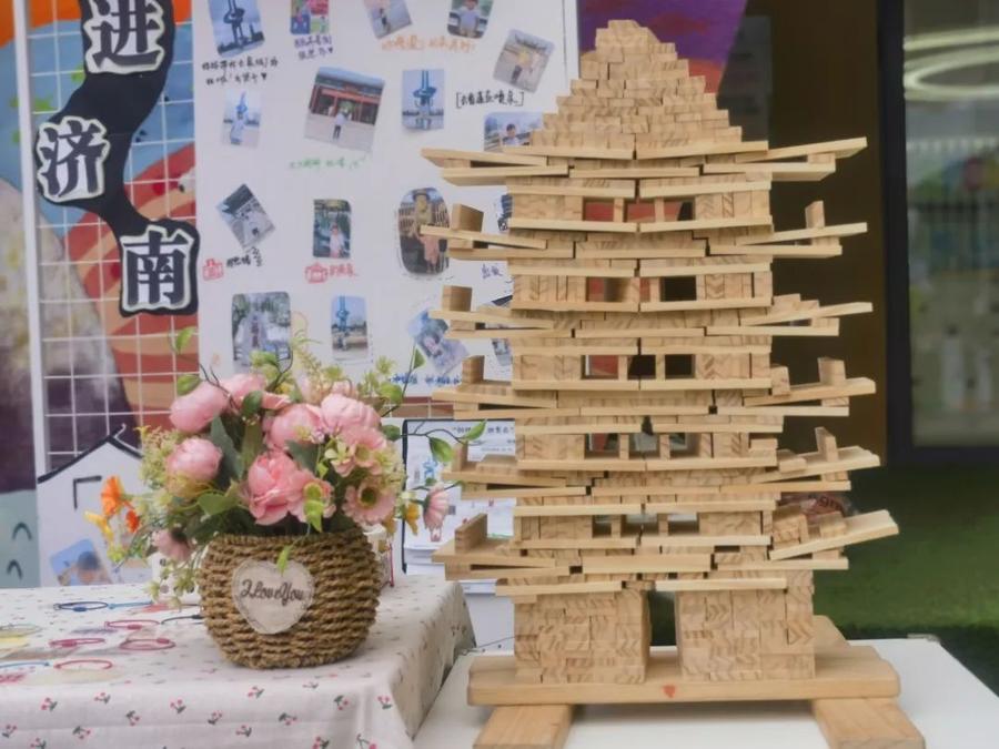 济南的一些地标性建筑,孩子们也用自己的方式呈现出来。宏伟壮观的“超然楼”、“大明湖牌坊”皆是孩子们用一块一块的积木搭建而成,还有热缩片挂件的地标建筑和景点深受孩子们喜爱。