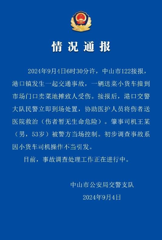 2024年9月4日,广东中山市公安局交警支队发布一则情况通报: