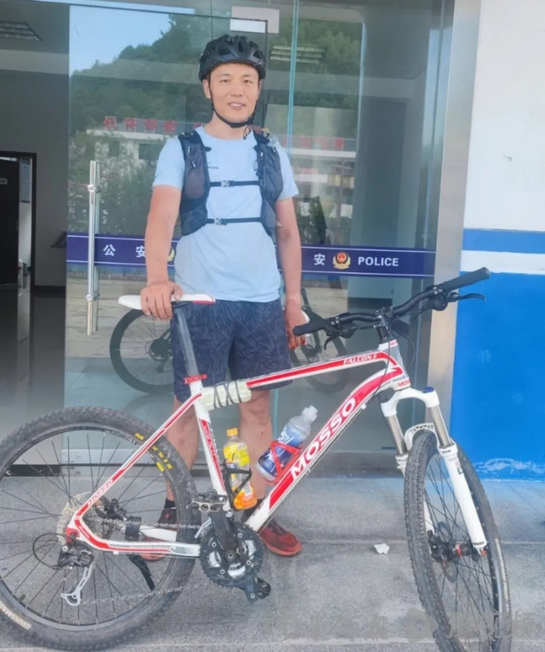 临走前,民警对我批评教育了一顿,告诉我这条线路的危险,并让我以后不要这么冒险,但也表达了对我的佩服,一个人出来就算了,还骑了个山地车从这儿出来,实在不可思议,并且还说,如果不是我这次走这里,可能一两年也不会有人发现遇难者,临走的时候,民警给我拍了照留作纪念。