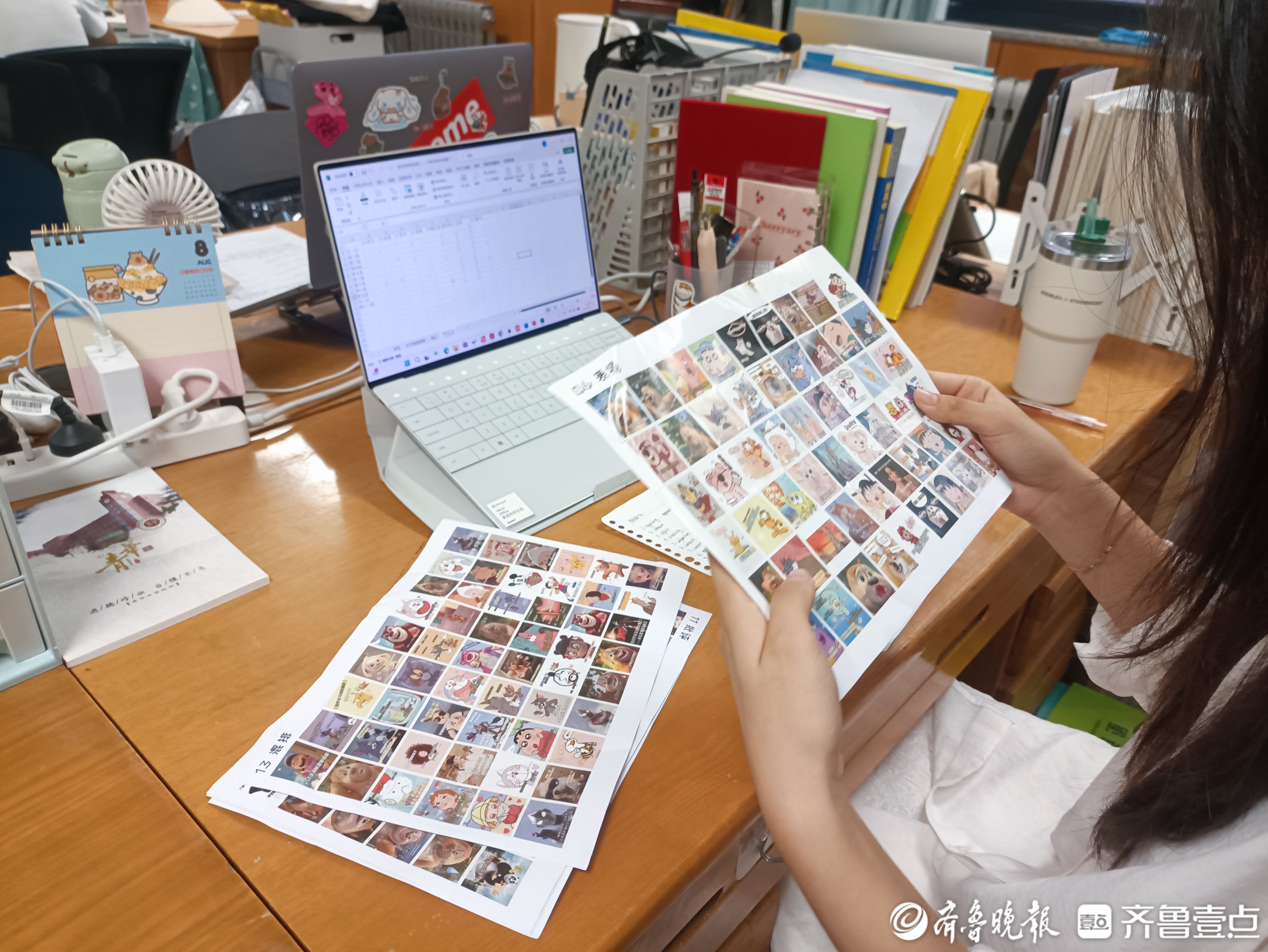 而在尹淘的办公桌上,记者发现了一堆彩色小卡片。“这是我准备的表情包贴纸。”尹淘抽出几张,“批改作业时,完成质量高的同学,我会贴个‘学霸’类表情包以资鼓励。我上学的时候,老师表扬会写一个excellent(优秀),现在我觉得贴一个表情包,他们会觉得更有意思,下次还想要,他们就会更加努力,去争取这个表扬。”时下流行的表情包配上诙谐幽默的文字,是尹淘拉近与学生距离的又一法宝。