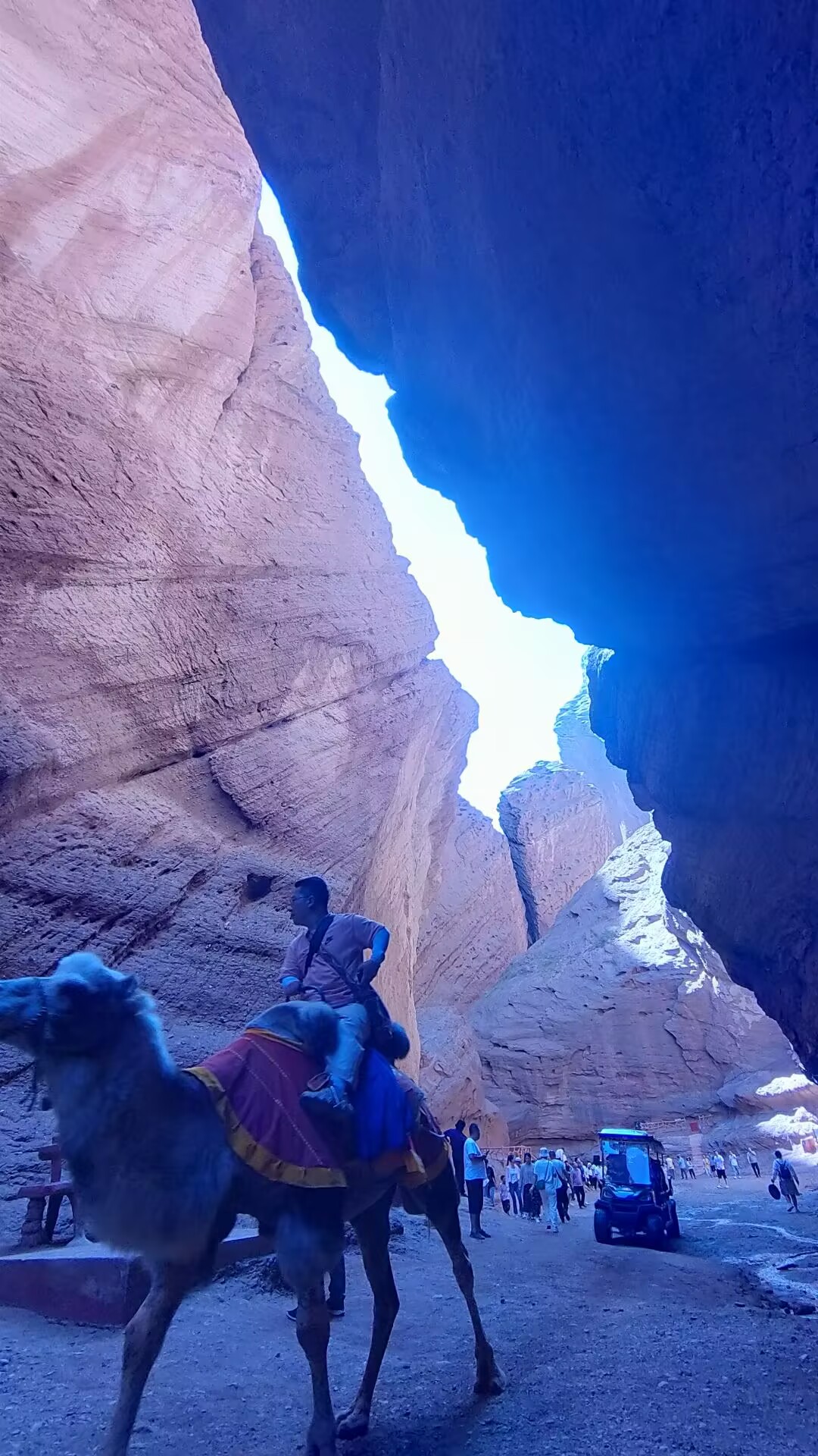 大峡谷呈南北弧形走向,开口处稍弯向东南,末端微向东北弯曲,全长5000多米,谷端至谷口处自然落差200米以上,谷底最宽53米,最窄处仅0.4米,仅容一人低头弯躯侧身通过。谷侧奇峰嶙峋,争相崛起;峰峦叠嶂,劈地摩天,崖奇石峭,磅礴神奇。谷内蜿蜒曲折,峰回路转;移步易景,举目成趣。