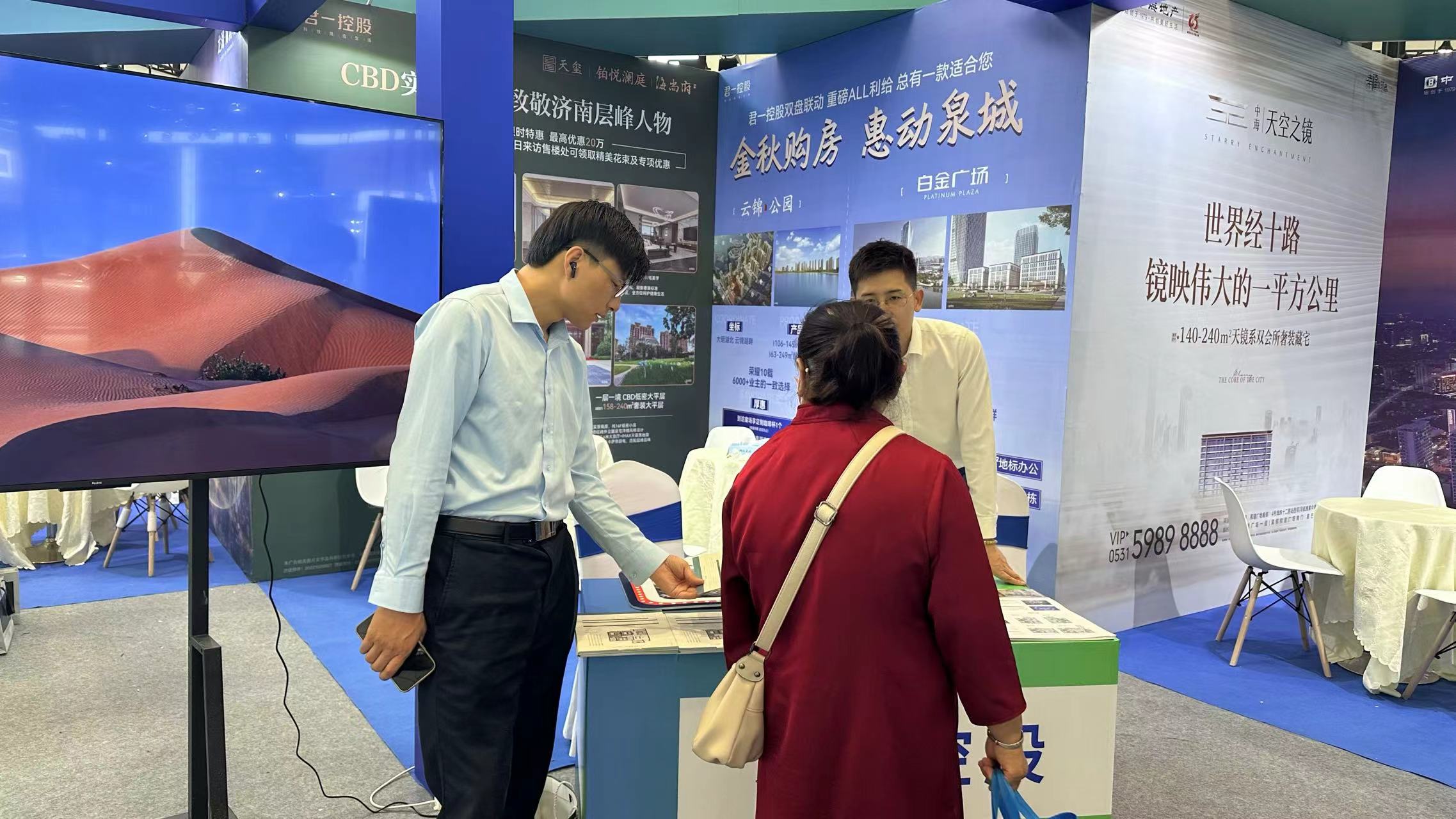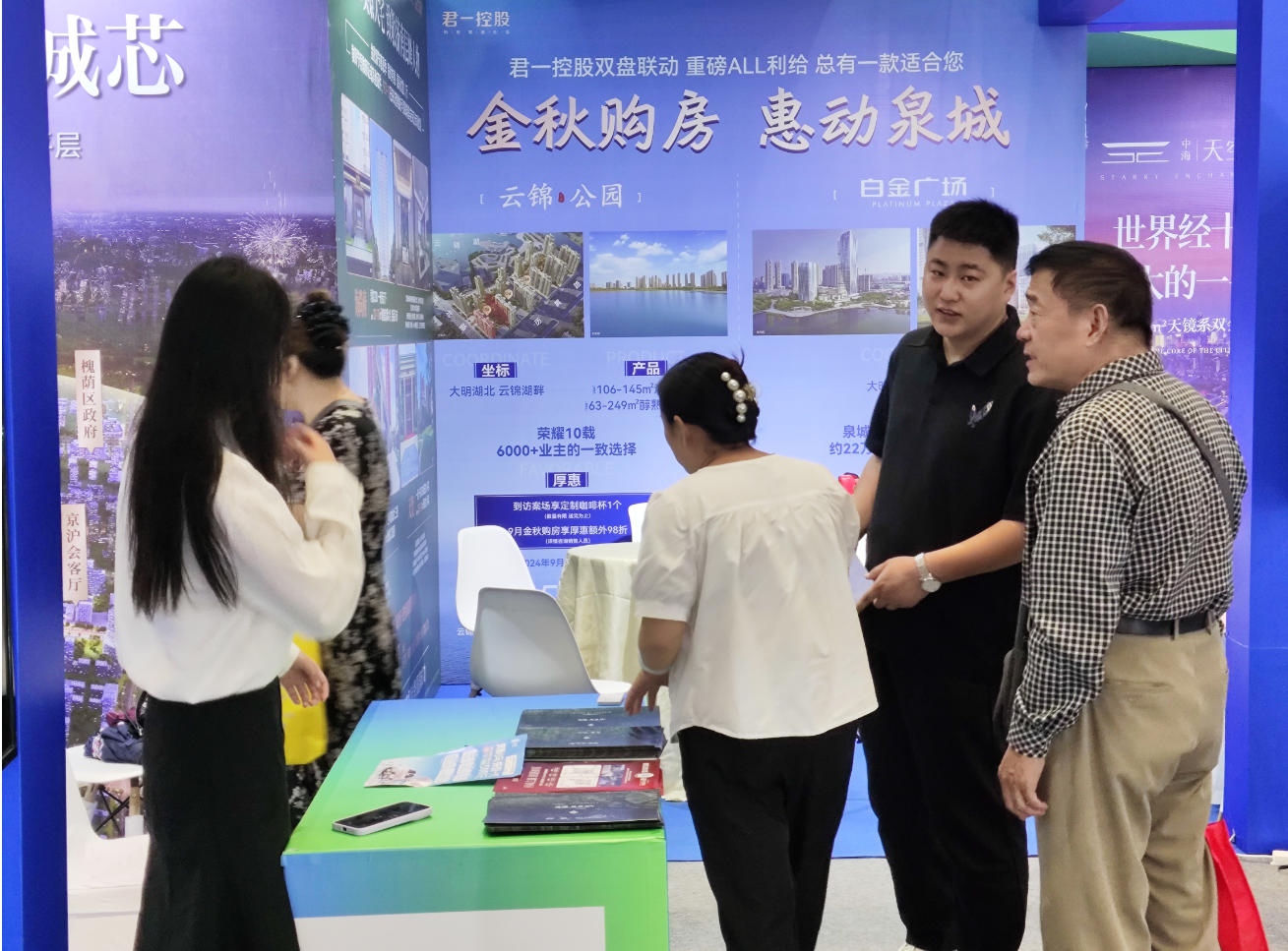 君一控股济南的五个地产项目集中参展,分别是科技城片区的铂悦澜庭、天玺、海尚府项目,以及北湖片区的云锦公园项目、白金广场商业项目。“近年来,科技城片区一直是济南的热门区域,铂悦澜庭、天玺、海尚府作为片区内楼盘,每个项目都有自己鲜明的特点。不论从产品类型、面积段还是产品价格,我们科技城片区的三个项目基本上满足了想要在历下区置业的购房者的大部分置业需求。”海尚府项目置业顾问介绍说。