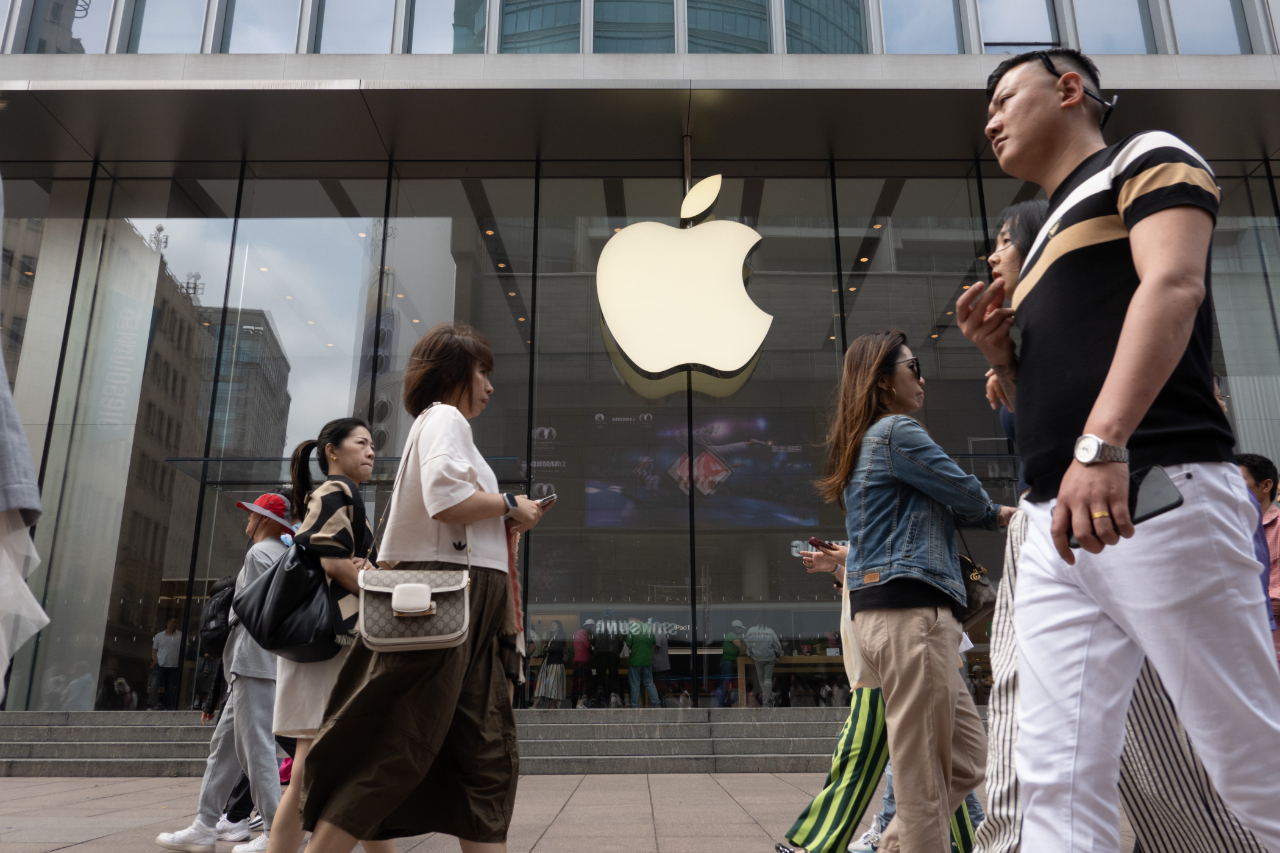 行人路过苹果专卖店。(图片由CNSPHOTO提供)