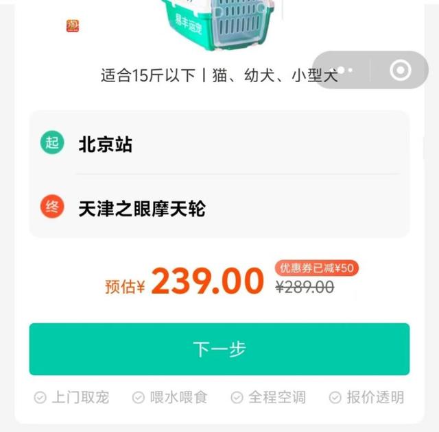 记者在某宠物托运平台查询发现,仅从北京到天津的托运费用就达到200多元,是普通快递的十倍多。