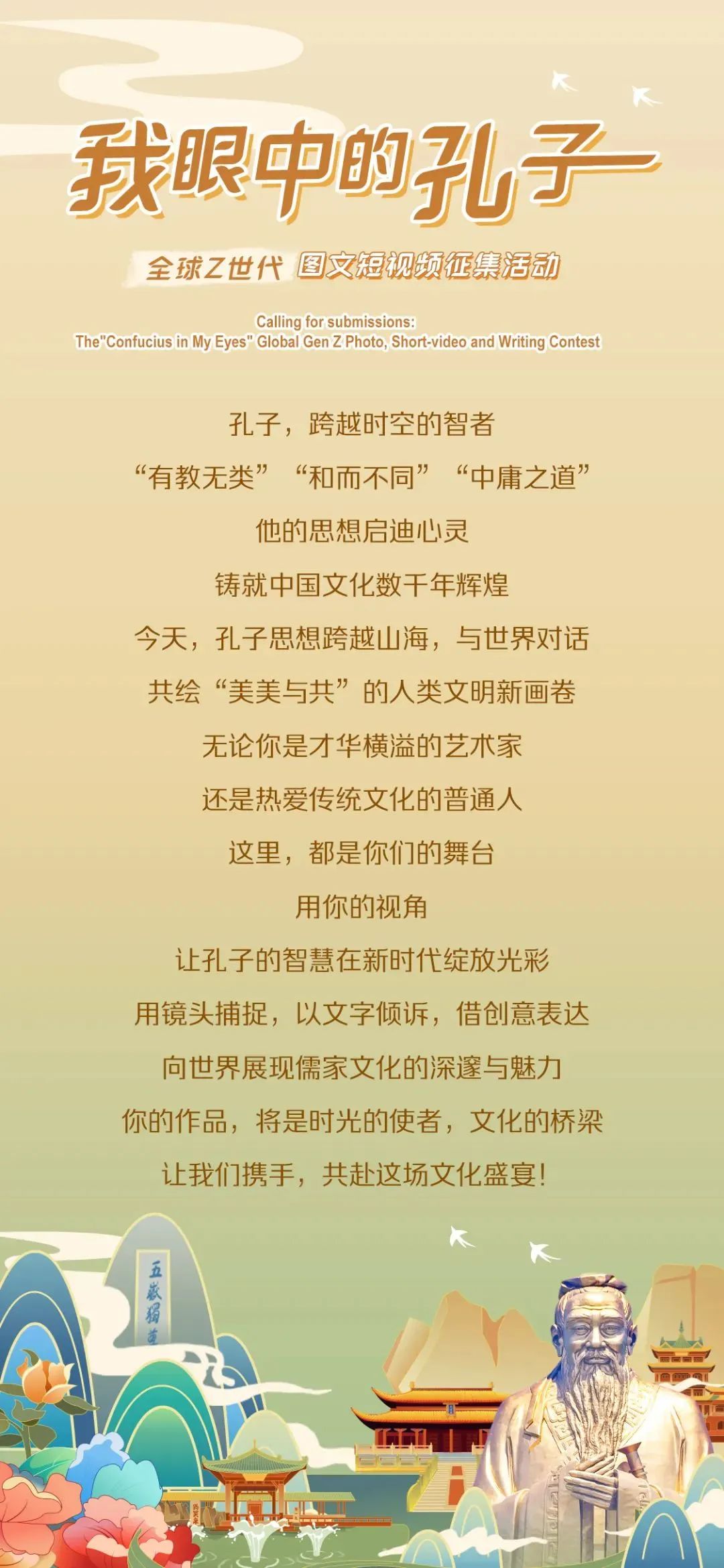 “我眼中的孔子”全球Z世代图文短视频征集活动今日正式开启!