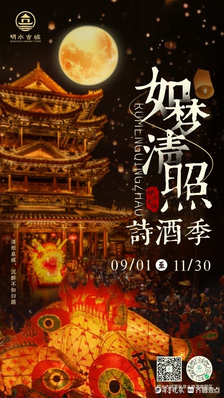 这个中秋佳节,明水古城诚邀您共赏泉畔月色,明灯祈福,感受那份“千里共婵娟”的浪漫与温情。在诗意与烟火气的交织中,享受这份独特的团圆时刻。