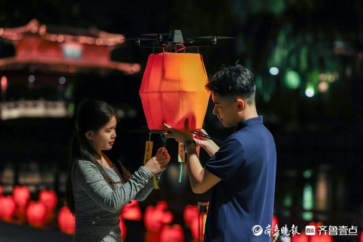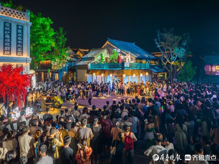 中秋假期期间,明水古城景区五大板块活动轮番上演,异彩纷呈。月伴龙鱼-限定版泉秀,将鱼龙元素融入无人机表演,一睹国风非遗视觉盛宴。易安诗会中秋限定版,在沉浸式的互动体验场景中,举杯今夜清光,一饮万卷诗书;篝火电音派对,与青春作伴,烂漫烟火,沉浸浪漫人海。