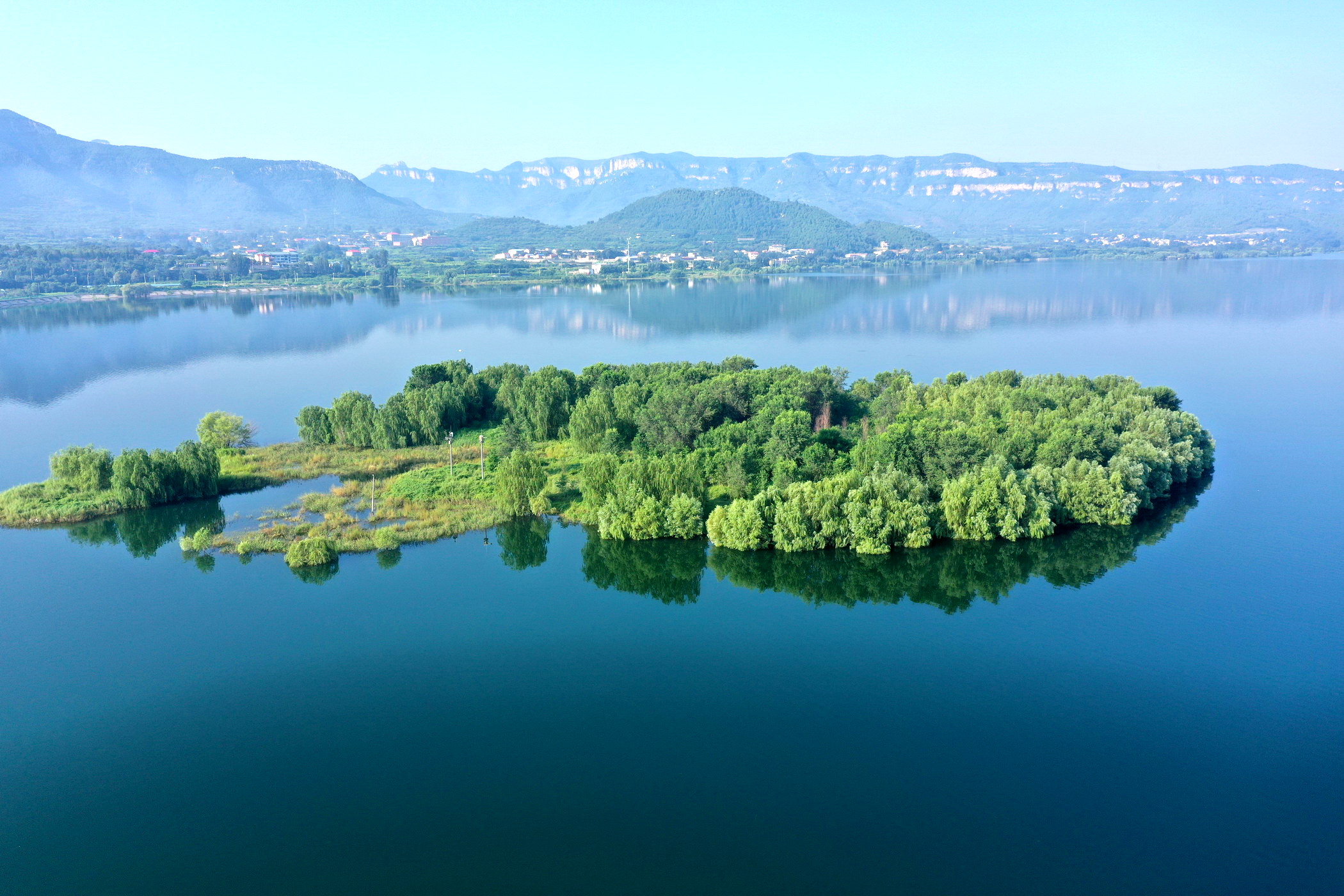 水库水面覆盖整个库区,岸边的柳林也变成了水面。湖中央的小岛迎来一年中最美的时刻,成了水鸟的天堂。 进入初秋、汛期将过,目前卧虎山水库蓄水量达5829万立方米,接近5886万立方米的设计汛末库容。