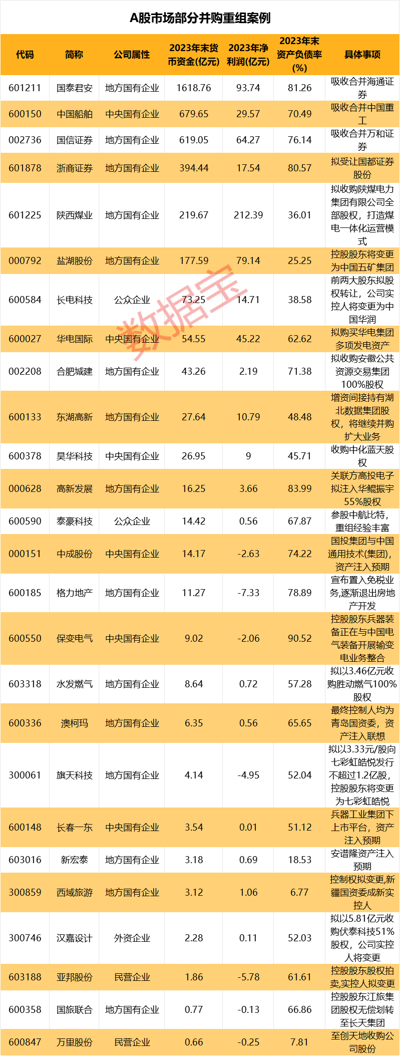 部分并购重组公司出炉