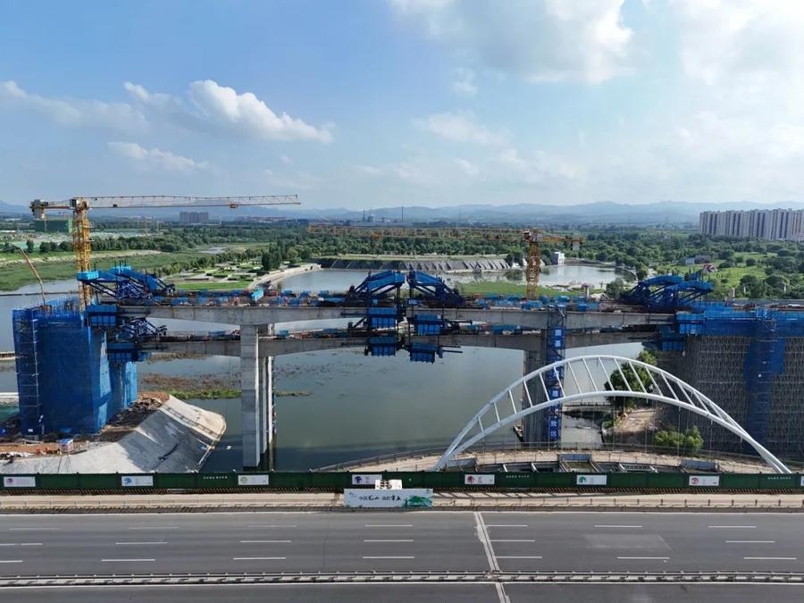 盾构施工提速增效的同时,8号线高架段建设也在快马加鞭推进。刚刚过去的中秋假期,8号线近2500人奋战在建设一线抢工期、保进度。9月15日,8号线跨绣源河悬浇连续梁浇筑完成。该悬浇梁共配备12套挂篮同时进行施工,挂篮间最小间距仅有5cm,给施工带来很大困难,为此,8号线建设项目部加强挂篮行走、混凝土浇筑、临边防护等关键环节和点位的检查和盯控,确保了连续梁施工安全。