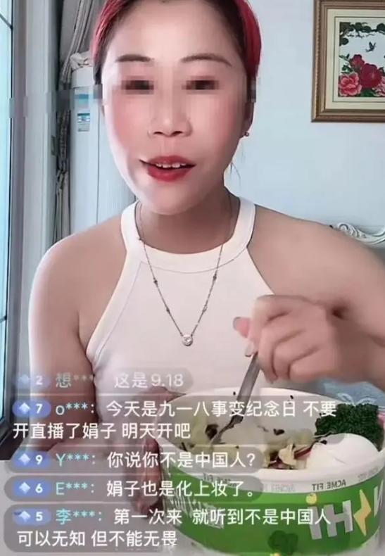 9月18日,江苏一位41万粉丝的网红“娟子爱吃”在直播间公然调侃“918”,称自己不是中国人。网友指出问题的严重性后,她直怼网友管得多:“你们是瞧不起没文化的人吗?”