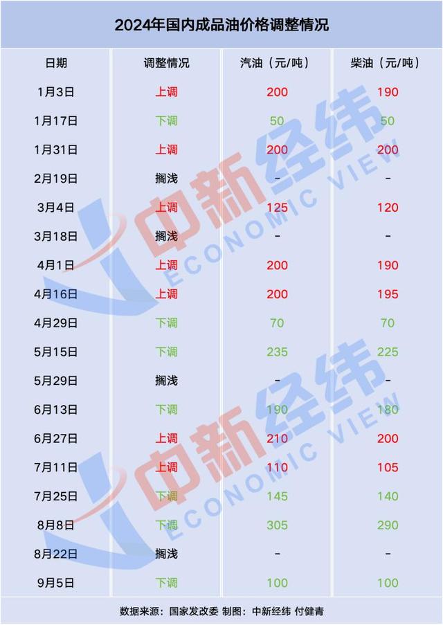 目前,成品油年内最大下调幅度为汽油降305元/吨,柴油降290元/吨。若按机构测算,本轮调整或现年内最大跌幅。