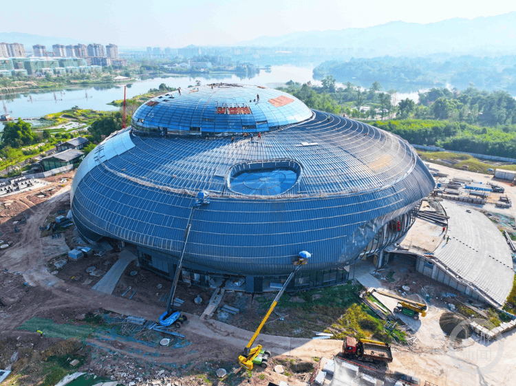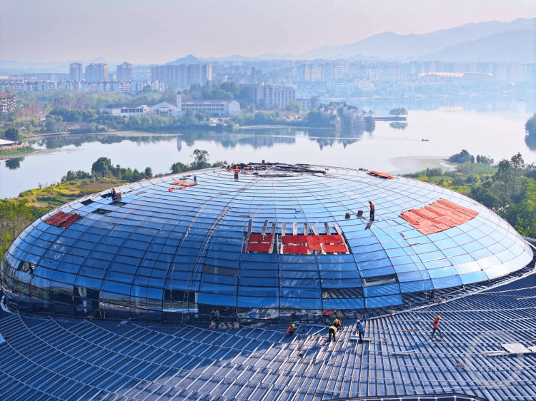 9月19日,梁平区双桂湖畔的都梁大剧院建设工地,工人们在进行幕墙施工。 梁平区都梁大剧院是成渝地区双城经济圈2024年文旅重点项目,总用地面积约40.3亩。 目前,项目正在加紧幕墙施工、室内装饰装修、室外管网施工等建设,预计将于今年12月完工。 上游新闻特约摄影 刘辉摄影报道 投稿邮箱:syxw@vip.163.com