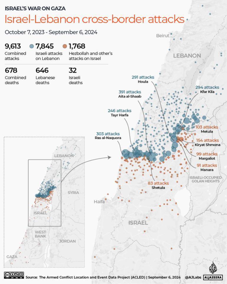 过去一年以色列与黎巴嫩境内武装冲突详情 AlJazeera 图