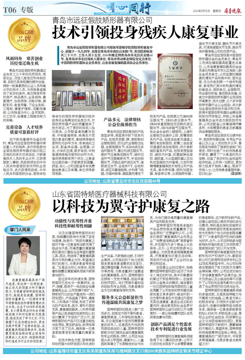 随着老龄化程度不断加深,辅助器具越来越成为众多家庭的必需品,由齐鲁晚报·齐鲁壹点主办的第六届(2024)养老口碑品牌推选发布活动,广泛邀请专注于养老设备、适老产品研发生产的企业参加,设立康复辅助器具企业展示专区。9月26日,2024山东康复辅助器具行业口碑品牌榜单正式发布!