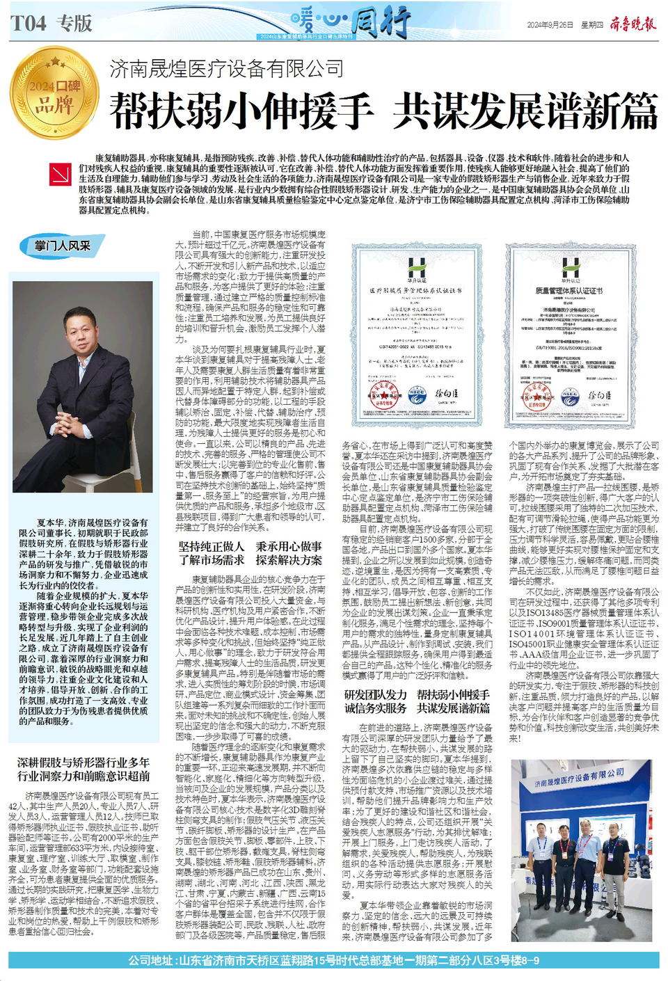 2024银发经济影响力品牌|济南晟煌医疗设备有限公司