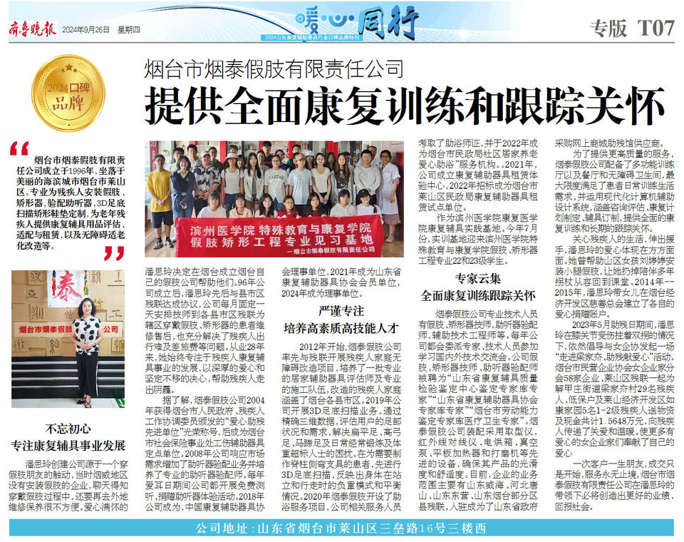 烟台市烟泰假肢有限责任公司 | 提供全面康复训练和跟踪关怀