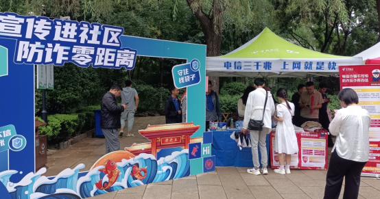 9月,在济南五龙潭公园西北门广场开展以“反诈宣传进社区 防范诈骗零距离”为主题的系列宣传活动。结合公园人流特点,中国电信山东公司通过拉设活动条幅、设立展架展板、发送宣传单页、播放宣传视频、反诈知识互动问答等多种方式向广大群众宣传行业特色反诈服务,讲解诈骗案例常见套路和防范手段,引导群众深入了解防诈知识,提升诈骗防护意识和能力。