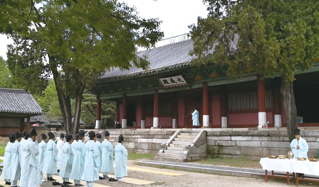 每年春秋两季,成均馆大学文庙都会举行大型释奠祭祀活动,即“释奠祭”。这一活动自中国宋代传入韩国,历经中断与复兴,至今仍是韩国现存各国孔庙中唯一完整保存祭孔典礼原貌的文庙。释奠祭场面庄严隆重,由国王亲临主持的传统虽已不复存在,但文庙仍设有专门的组织机构,负责筹备一年两次的释奠祭祀,并有“释奠教育院”培训祭祀礼节、乐舞等,确保祭孔活动的规范有序。