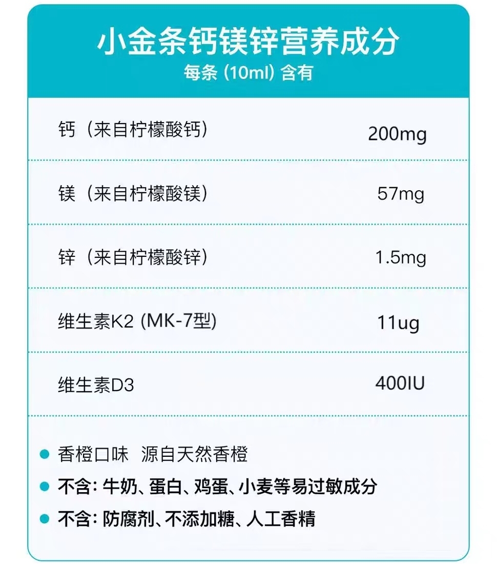图为小金条钙镁锌产品成分含量SGS检测报告