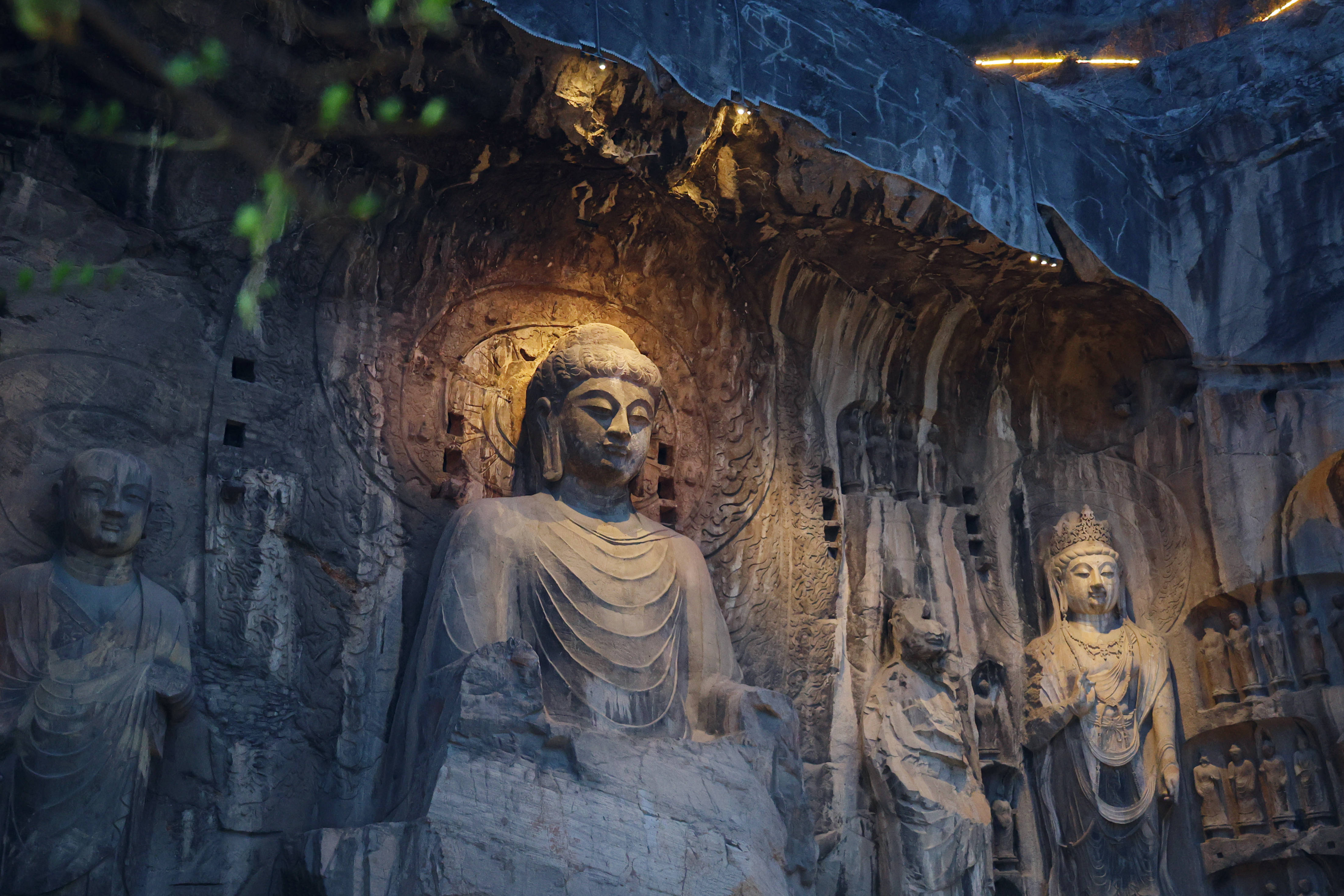 ↑2024年3月20日在河南省洛阳市洛龙区拍摄的龙门石窟夜景。CICPHOTO/冯广纳 摄