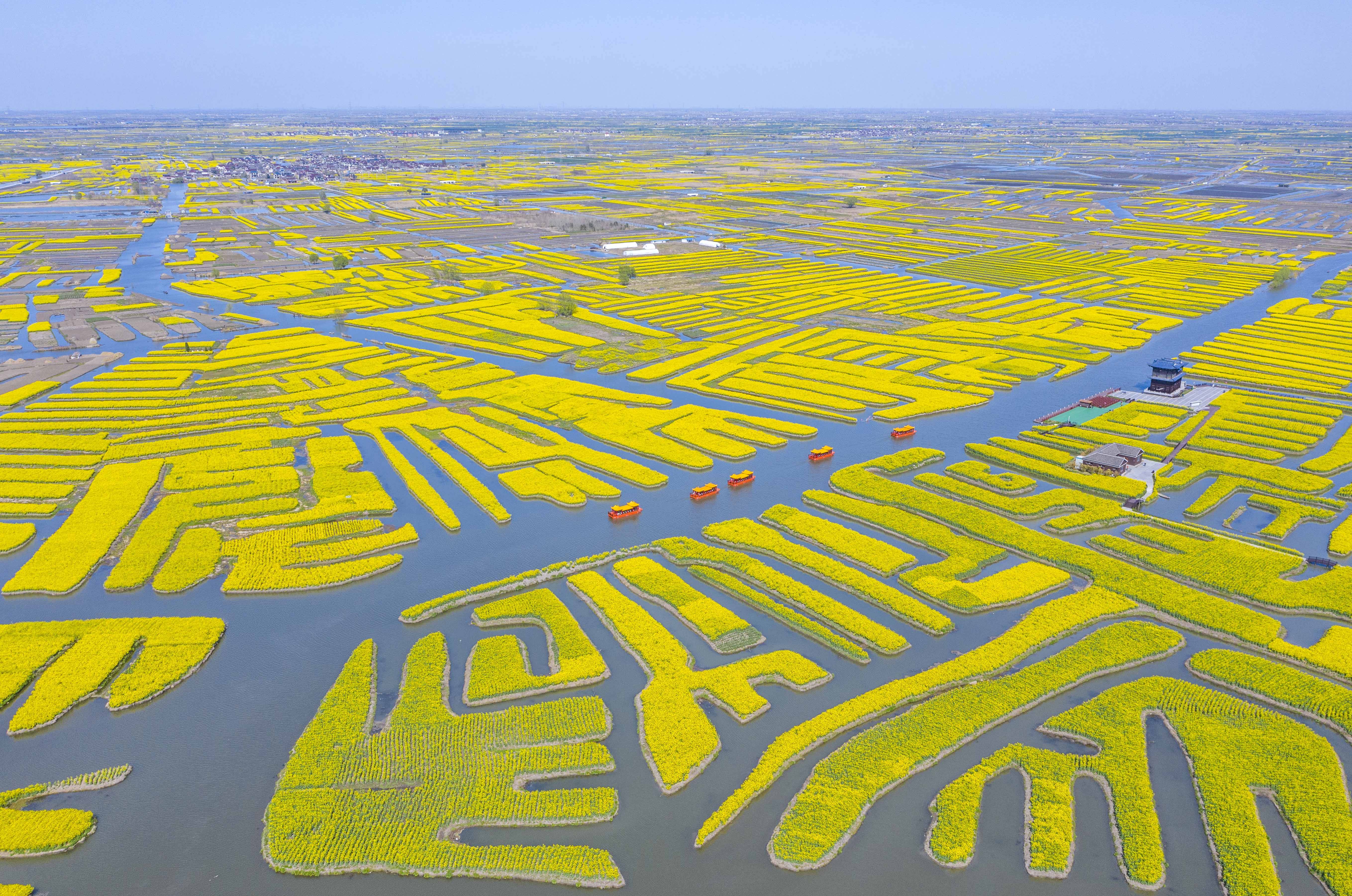 ↑2022年3月28日在江苏省兴化市拍摄的千垛景区。兴化垛田是全球重要农业文化遗产和世界灌溉工程遗产。(无人机照片)CICPHOTO/顾继红 摄