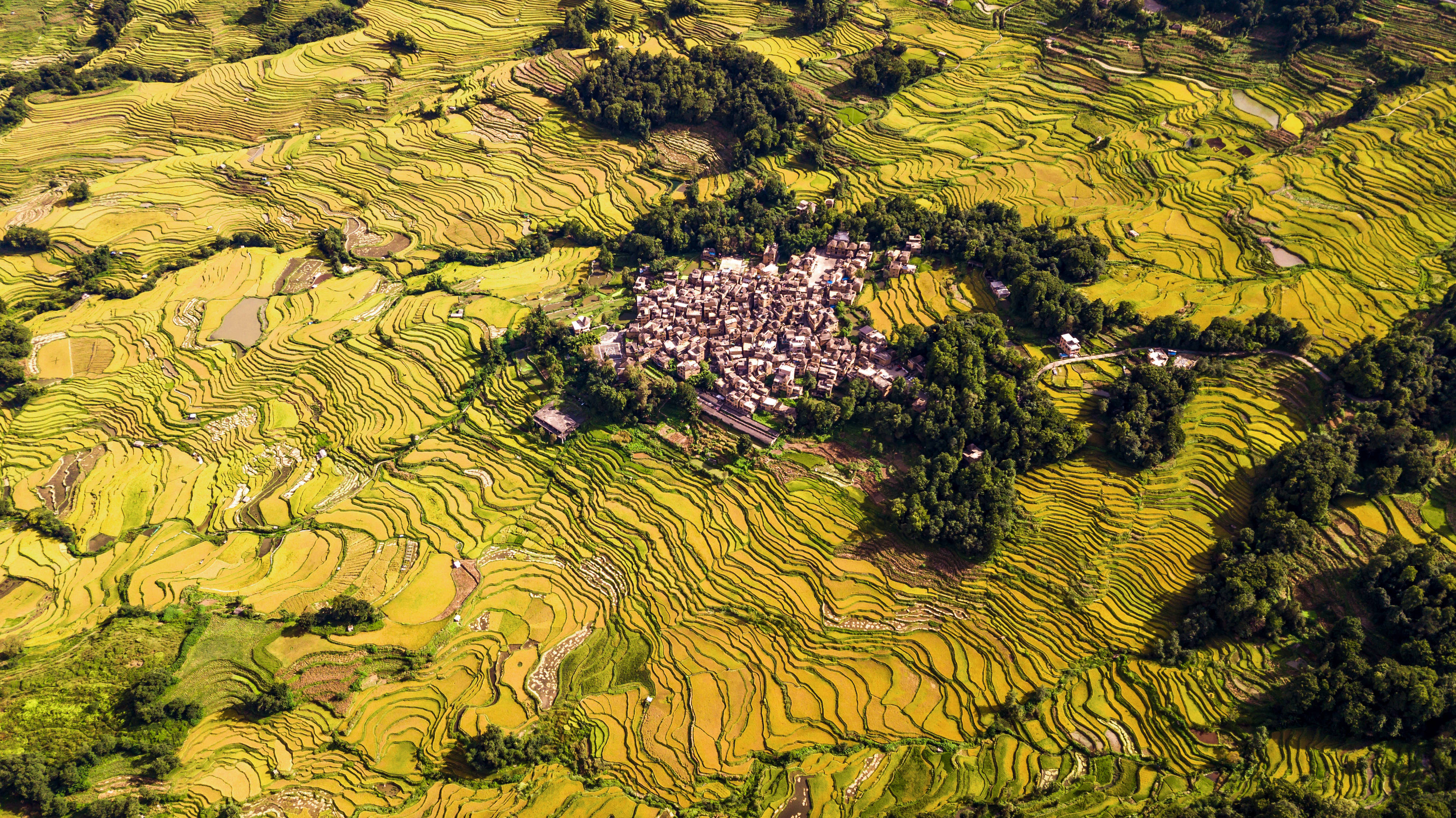 ↑2022年11月4日在云南省红河哈尼族彝族自治州元阳县拍摄的梯田景观。(无人机照片)CICPHOTO/田文国 摄