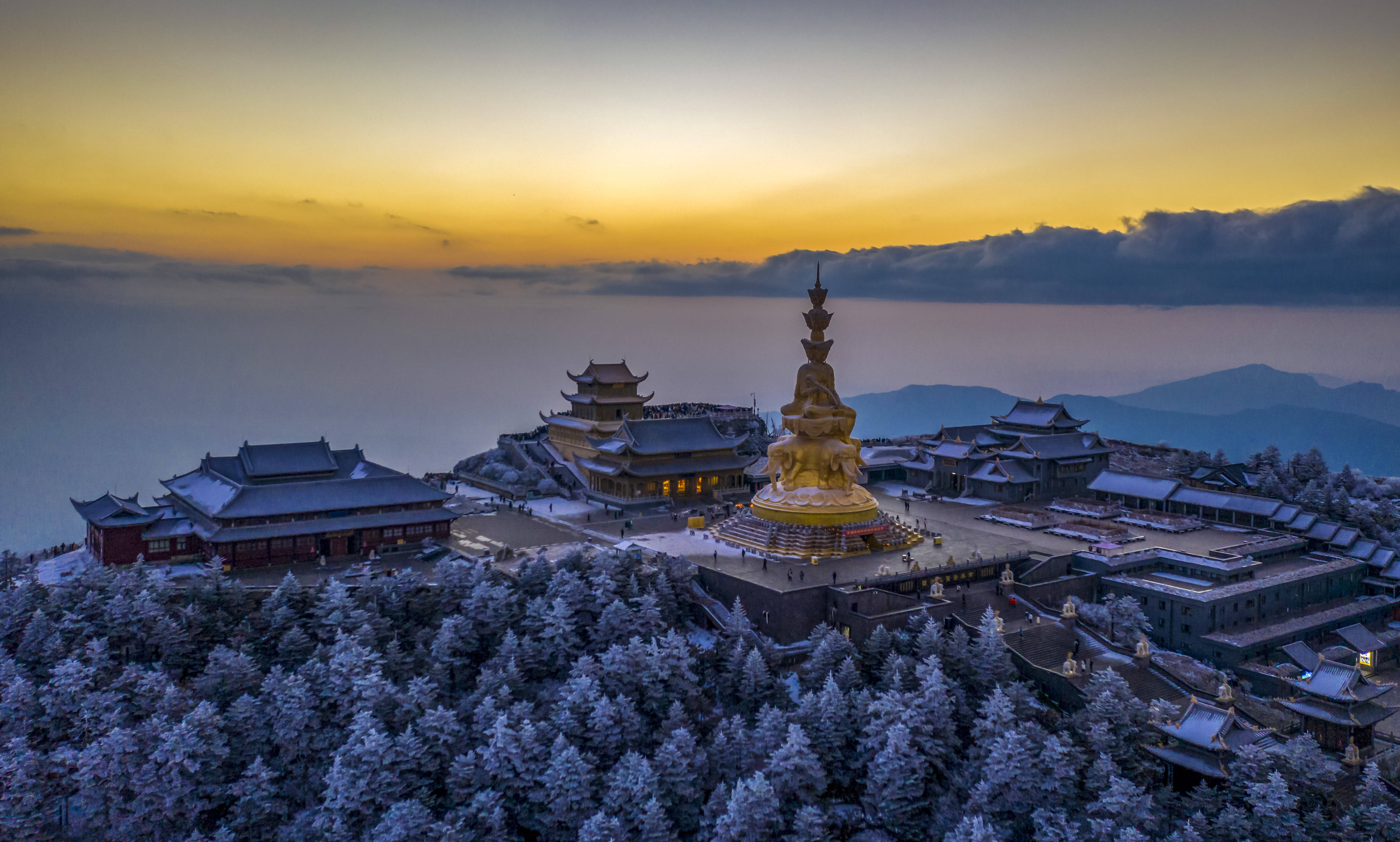 ↑2022年1月1日在四川省峨眉山市拍摄的“双遗产”名山峨眉山。(无人机照片)CICPHOTO/周乐鹏 摄