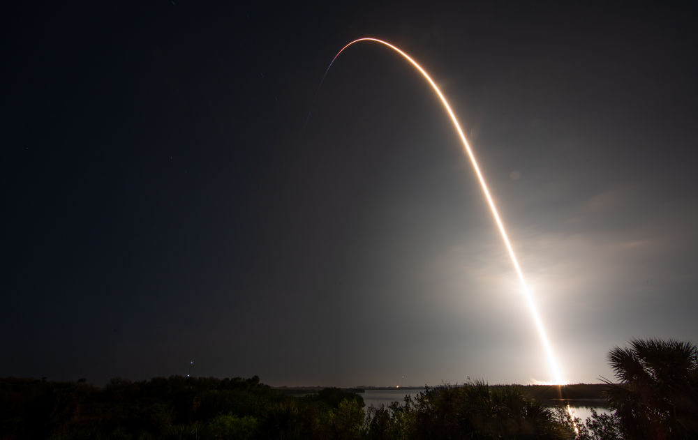 2023年3月2日,“龙”飞船搭乘“猎鹰9”火箭从美国佛罗里达州肯尼迪航天中心发射升空(长时间曝光照片)。新华社发(美国航天局供图)
