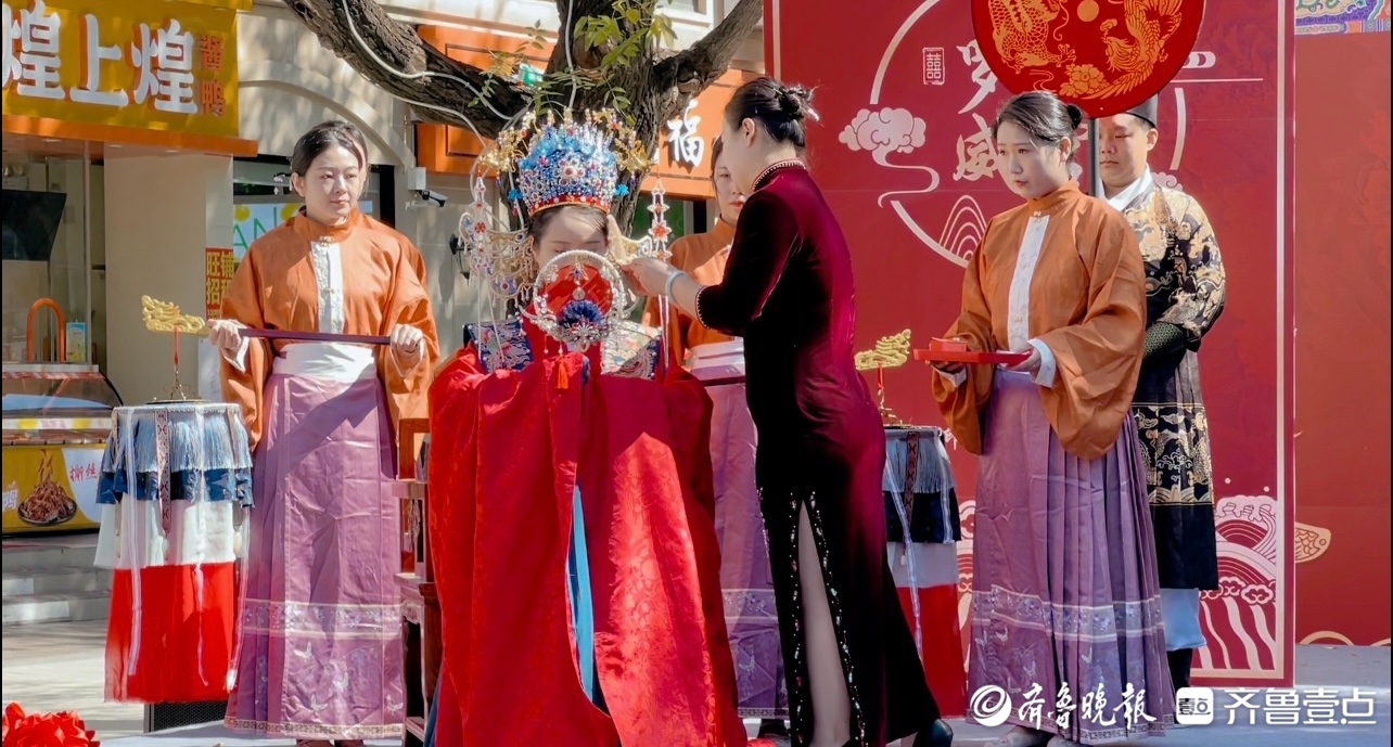 “现场有八抬大轿、舞狮等,很是壮观。”张薇补充,除了中式仪仗队外,还会有一场在礼堂里的白纱仪式,可以满足新人的不同需求。她解释,大婚不单单是一场婚礼,也是专属新人家族的一场仪式,他们想让新人们感受传统婚俗的魅力。