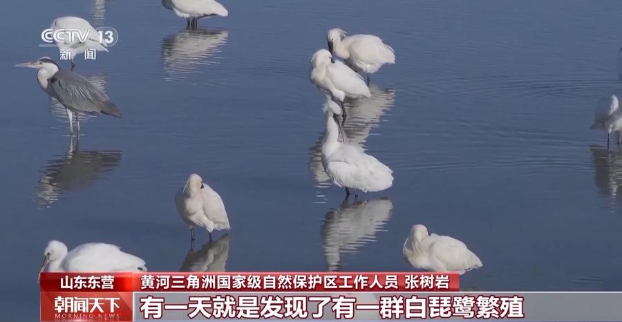北京师范大学教授 中国动物学会副理事长 张正旺:这是首次在黄河三角洲,也是首次在山东境内发现黑脸琵鹭繁殖,使黑脸琵鹭这个物种它的繁殖分布区向南扩展了有几百公里。