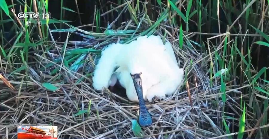 黄河三角洲国家级自然保护区工作人员 张树岩:有一天发现了一群白琵鹭繁殖,我想白琵鹭里边会不会有黑脸琵鹭繁殖呢?我就仔细地找,终于找到了。