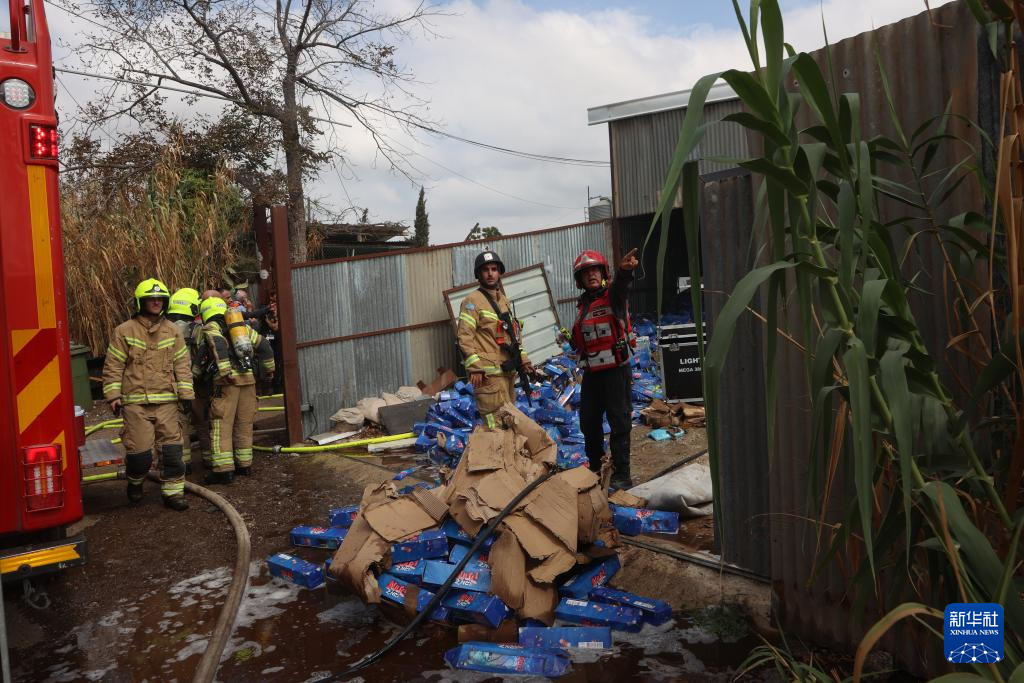 7日,在以色列特拉维夫附近的哈巴德村,救援人员在火箭弹袭击现场工作。