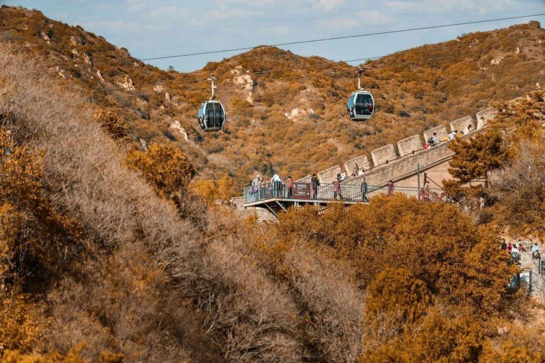 乘坐八达岭长城北索道,直达八达岭长城最高楼——北八楼“好汉坡”,观赏红叶漫山的盛景;或是乘坐地面缆车穿行红叶间。