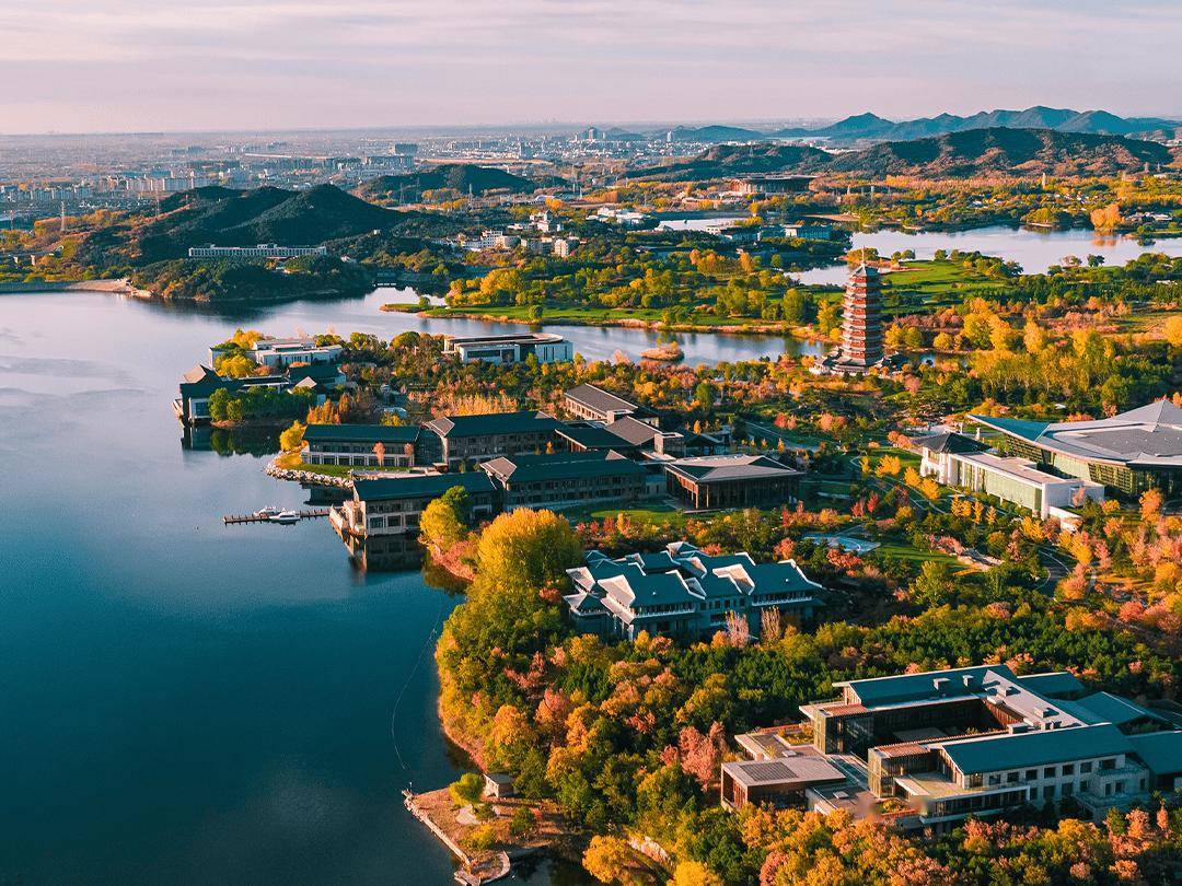 雁栖湖三面环山,群山环亘,重峦叠嶂