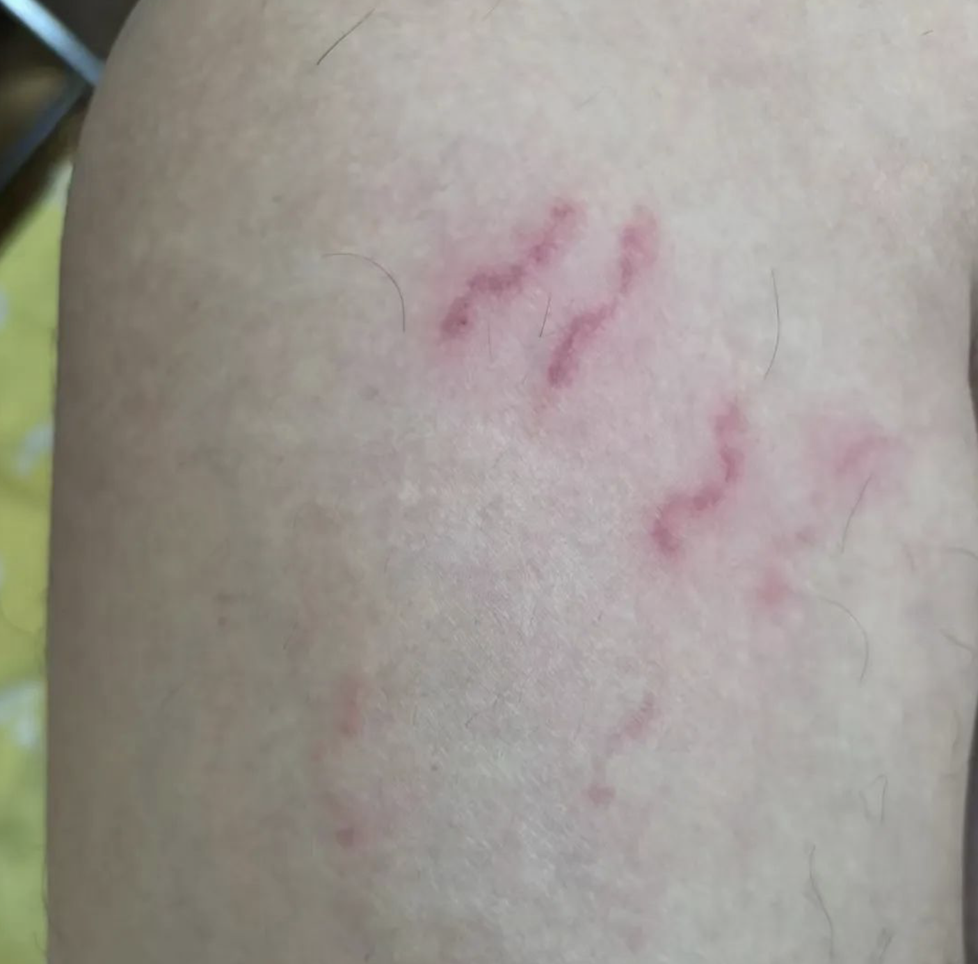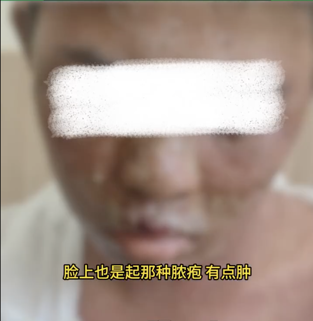 第二天起来就发现脸和身上不仅多处红肿,还烧着疼。
