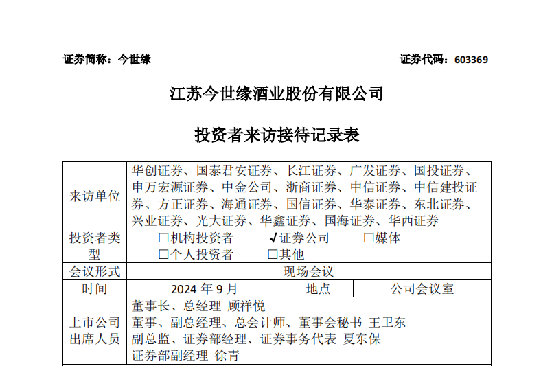 10月8日,江苏今世缘酒业股份有限公司发布投资者来访接待记录表显示,相关负责人在回应投资者关注:“竞品增投费用,如何评估省外费用投放的幅度和方向?”