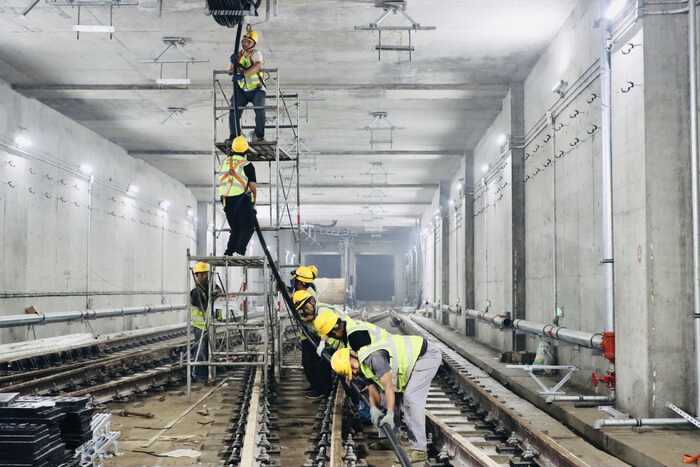 截至目前,4号线全线33座车站已全部实现进场,28处区间实现双线洞通,铺轨已实现17站22区间进场施工,累计铺轨完成48.3公里。机电装修实现25座车站进场,强电专业实现19站17区间进场。