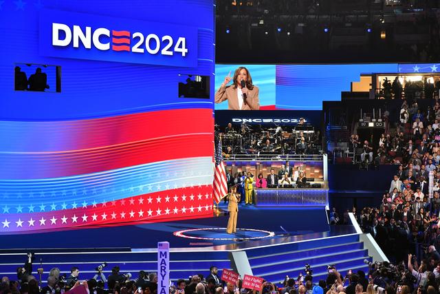 8月19日,在美国芝加哥,美国副总统哈里斯在民主党全国代表大会上发言。