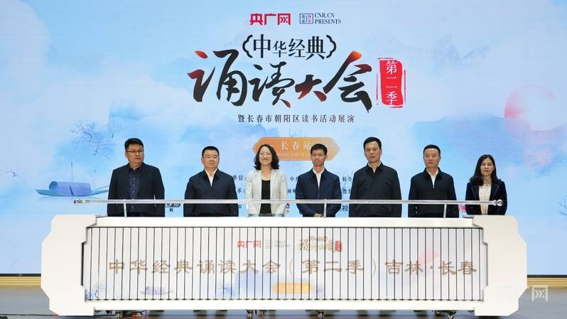 启动仪式上,央广网副总裁宫歆慧,中共长春市委宣传部副部长谭皓,中共长春市朝阳区委常委、宣传部部长曲宝泽,长春市朝阳区副区长迟铭海,长春市朝阳区教育局党组书记、局长王海丰,央广网吉林频道负责人邢程,吉林省第二实验朝阳学校党支部书记兼校长邵丽平共同推杆启动中华经典诵读大会(第二季)长春站。